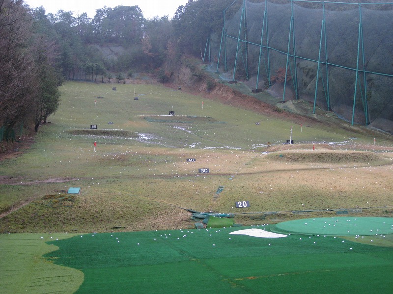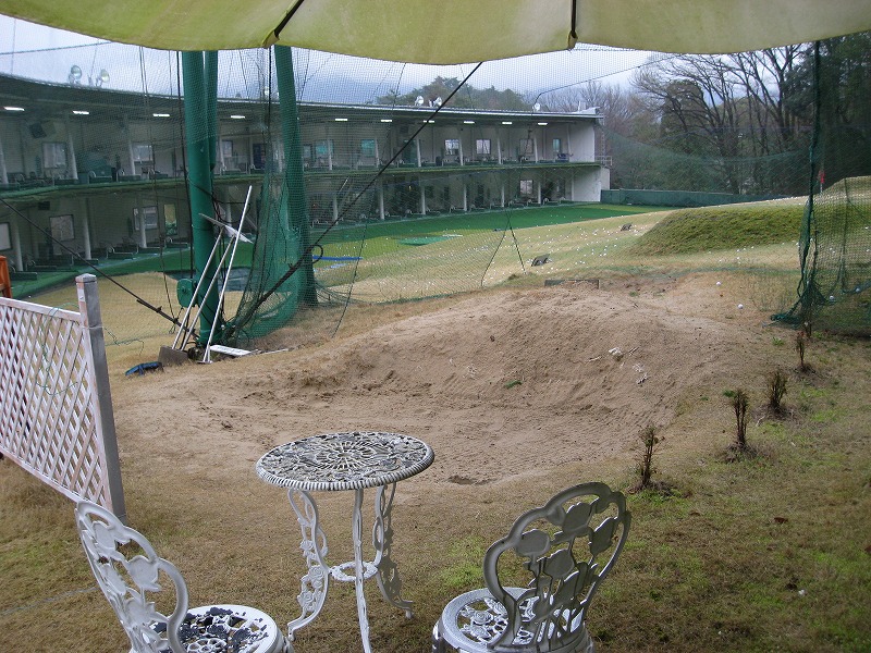 実際にコースで使われる、目の細かい焼き砂を使用したバンカー練習場あり