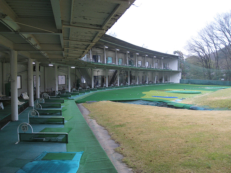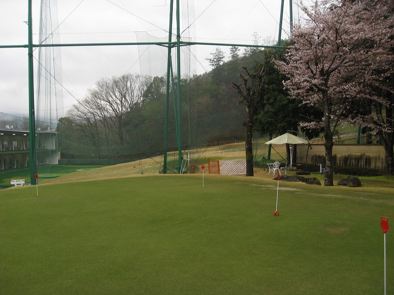 順目・逆目など、様々な状況を想定した数種類の人工芝を設置したショートアプローチ練習場あり
